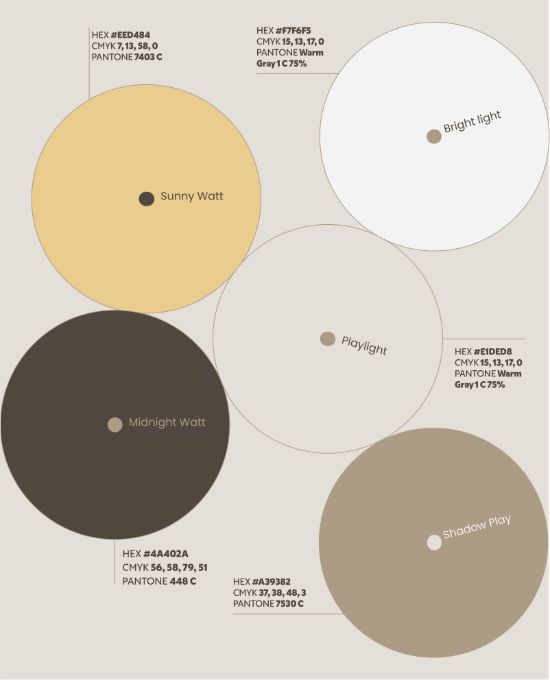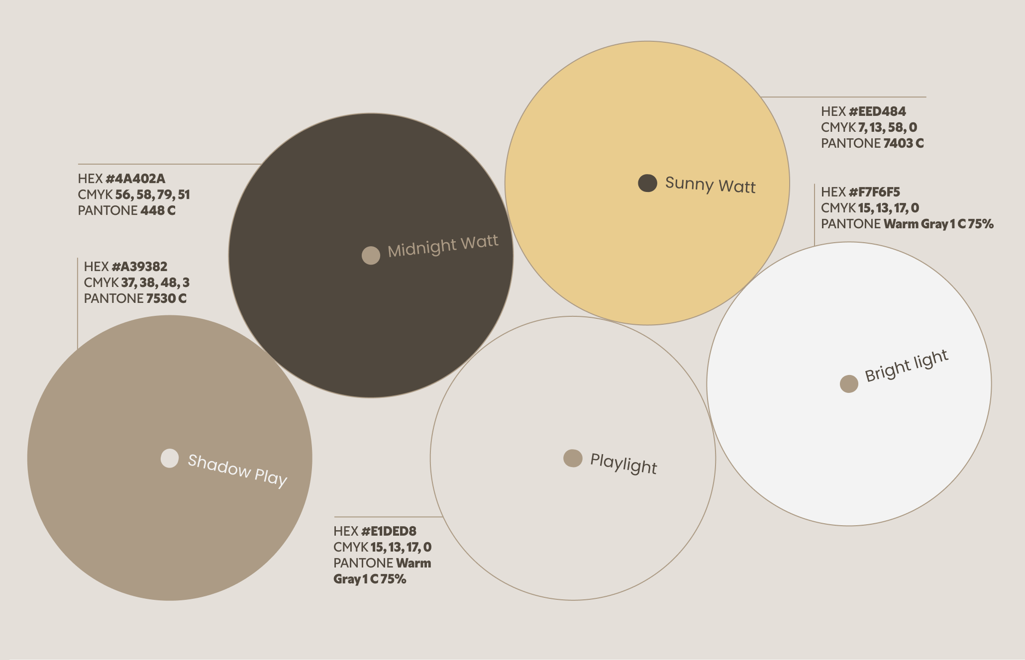 Mr Watt’s color palette is inspired by natural light and warm materials. It balances depth with softness — giving the brand a tone that is modern, calm, and full of character.